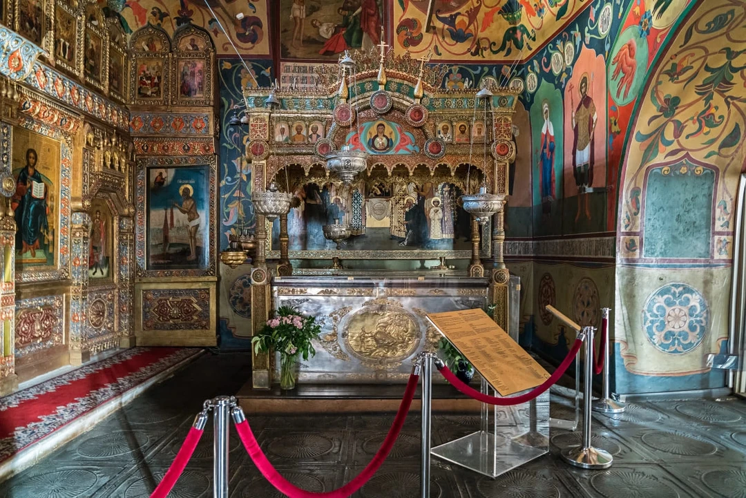 Сегодня все 11 церквей открыты для посещения. Можно побродить по крытым галереям и полюбоваться росписями стен XVII века с растительным орнаментом. Реставраторы говорят, что ни один цветок в узоре не повторяется! Стоит заглянуть в каждую церковь, чтобы сравнить интерьеры: одни удивят аскетичностью (например, церковь Троицы с белёными потолками и стенами), другие, напротив, поразят богатым убранством и росписями. Чего стоит один огромный иконостас в храме Василия Блаженного с образом Богоматери Смоленской XVI века!