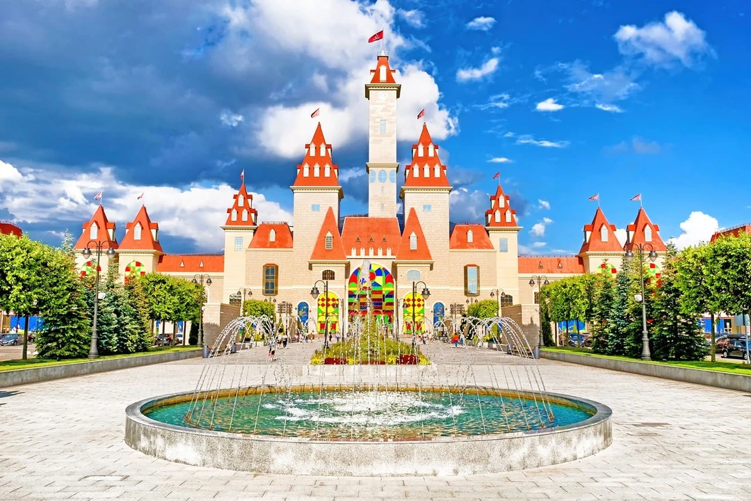 На территории этого центра развлечений есть сразу девять тематических зон. Например, «Заброшенный дом» — особняк Графа Страхов, где обитают привидения и прочая жуть. «Маугли в стране динозавров» — бескрайние джунгли, где, кроме отважного героя, придуманного Р. Киплингом, живут и самые опасные динозавры. А «Сказочная деревня» — волшебная территория, посвящённая персонажам повести А. Н. Толстого «Золотой ключик, или Приключения Буратино». Каждая из этих зон предлагает самые разные аттракционы — от классических, знакомых ещё советским детям (круглые кабинки на вращающемся диске), до технологичных (американские горки, для посещения которых понадобятся VR‑очки). На территории парка также работают уютные кафе, рестораны и тематические магазины.