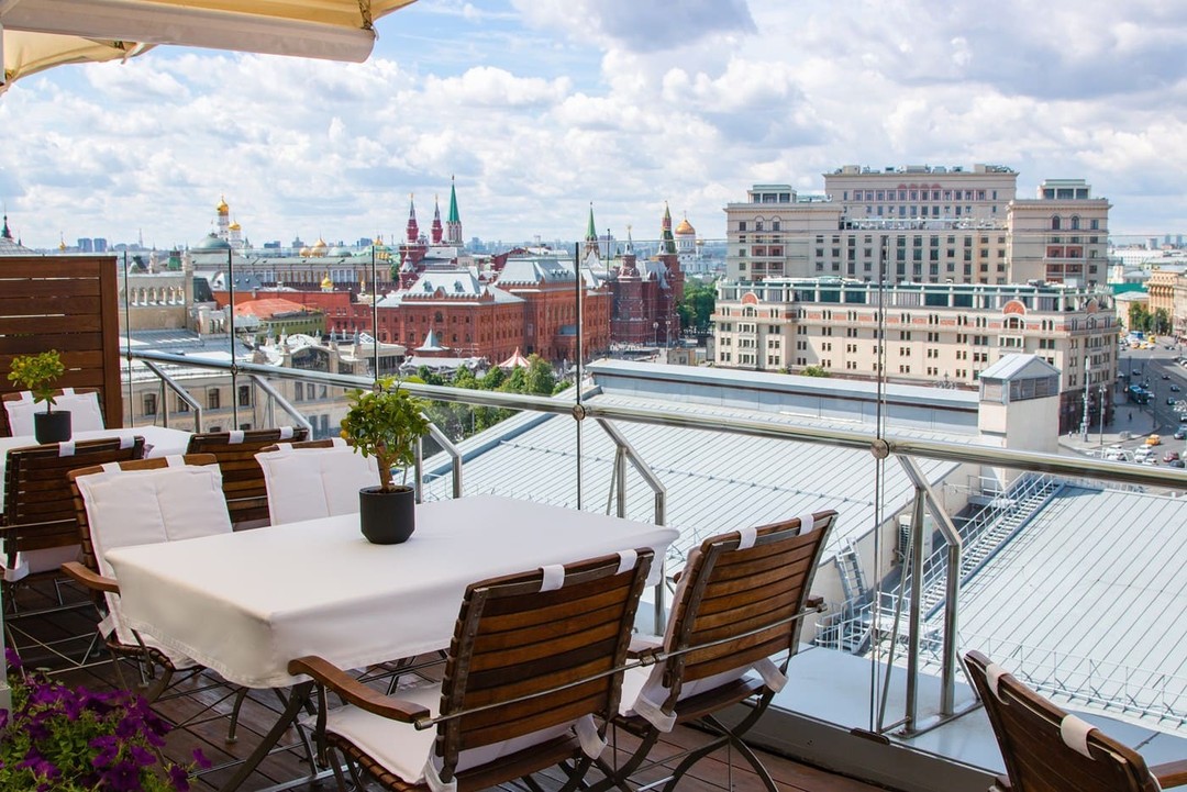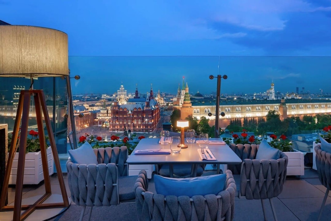 Здесь роскошно всё: и ресторан, и вид, который открывается с его террасы. О2 расположен на крыше отеля The Carlton в самом сердце столицы, через дорогу от Красной площади. Летом здесь открывается летняя веранда с панорамным видом на центр Москвы, так что столик стоит заказывать заранее. Цены соответствуют статусу места, но поход сюда окупается невероятным видом: с террасы можно рассмотреть Кремль, храм Василия Блаженного и даже здание МГУ.