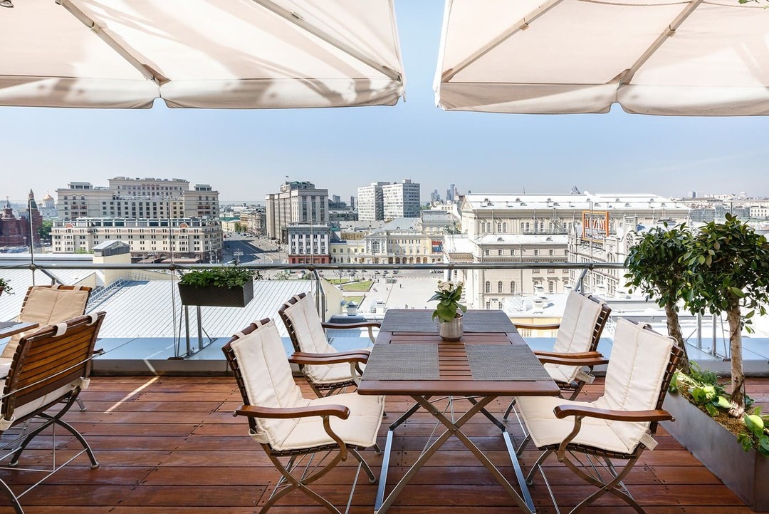 Ресторан с отличным видом на центр города есть и в другом знаменитом столичном универмаге. На крыше ЦУМа расположилась веранда Buro TSUM, созданного при участии онлайн‑глянца Buro 24/7, поэтому здесь нужно приготовиться к атмосфере богемности.