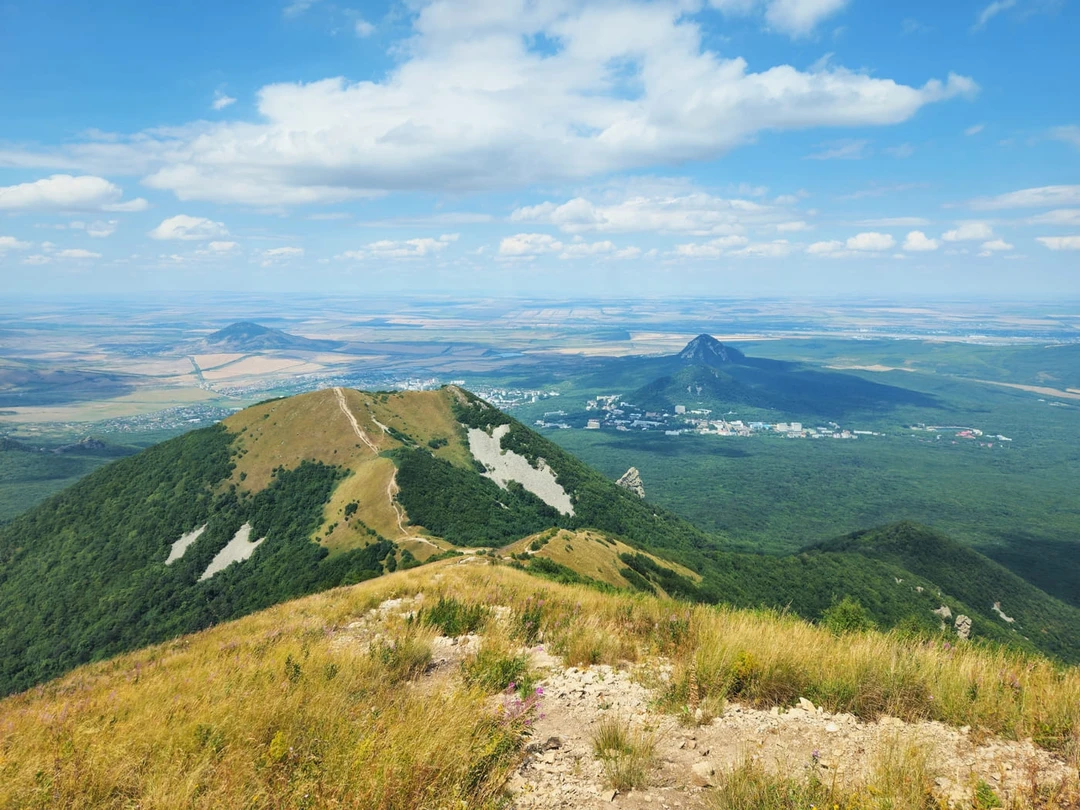 Гора с пятью вершинами, давшая название Пятигорску, находится в 10 километрах от города. Поездка сюда — прекрасный вариант экскурсии для любителей активного отдыха подъём. Участников довозят до подножия на машине и проводят по проверенному пути к наивысшей точке КМВ — вершине Большой Тау (1400 метров). В зависимости от темпа и подготовки участников, треккинг займёт от двух часов.