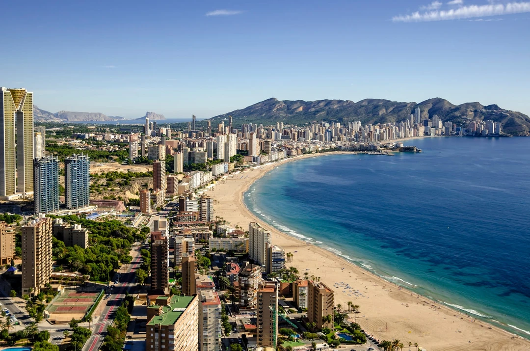 Весёлая курортная жизнь кипит в Бенидорме. Ещё меньше века назад здесь была тихая рыбацкая деревушка, а сегодня побережье застроено современными небоскрёбами. В городе много отелей, ночных клубов, баров и ресторанов. Работает аквапарк, а на популярных пляжах Леванте и Поньенте есть всё необходимое для комфортного отдыха — от аренды пляжного инвентаря до многочисленных водных развлечений, например, парасейлинга и прогулок на гидроциклах или парасейлинга (когда человека с парашютом тянет за собой катер на тросе).