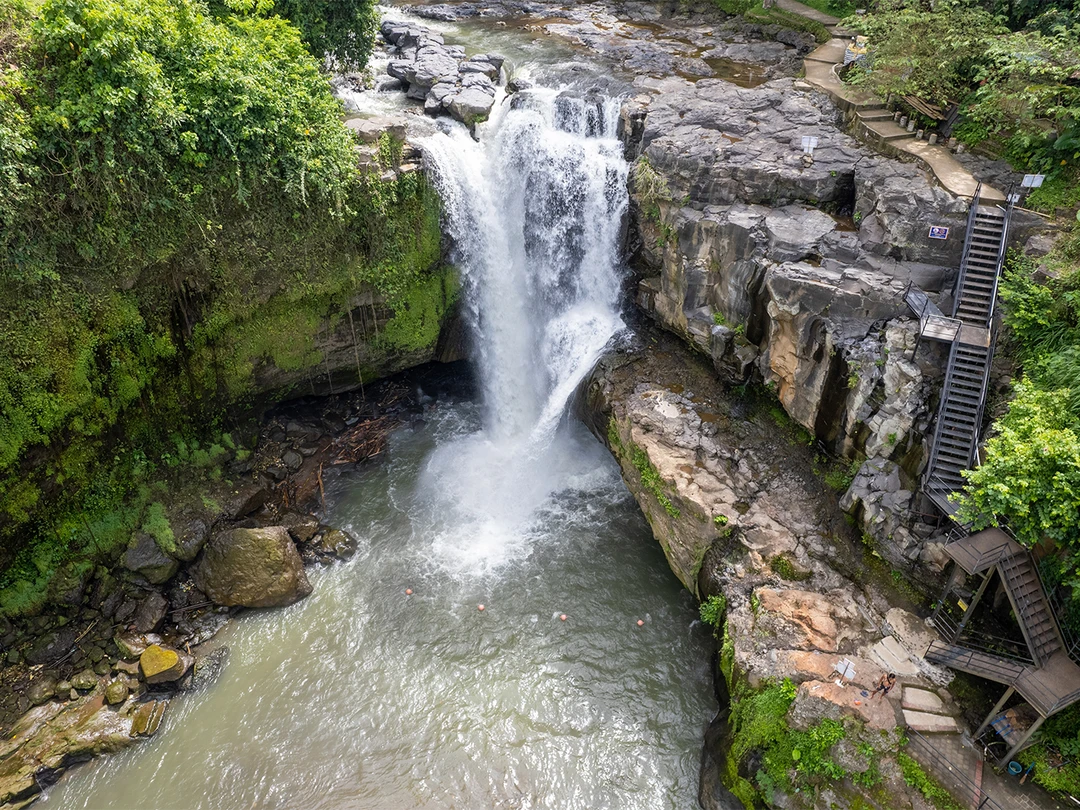 В отличие от мощных вертикальных водопадов, Канто‑Лампо — это многоступенчатый каскад, где вода струится по широким каменным уступам, создавая живописные переливы. Спуск к нему — один из самых комфортных на Бали, с которым справится даже ребёнок: пройти широкую лестницу с удобными ступенями можно всего за 10 минут. По пути расположены сувенирные лавки и зоны отдыха, а внизу — природный бассейн, где можно искупаться или осторожно забраться на камни и сделать впечатляющие фото. В жаркую погоду прохладные струи приятно массируют кожу и дарят свежесть.