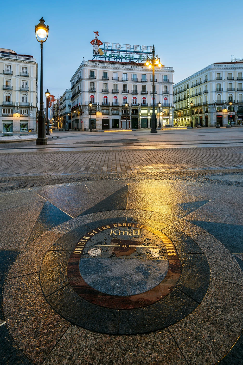 Возле здания Королевской почты в брусчатку вмонтирована большая плита, которая обозначает нулевой километр. Отсюда начинается отсчёт расстояний по всей Испании. У знака всегда много людей: путешественники хотят сделать памятное фото рядом с этим местом.