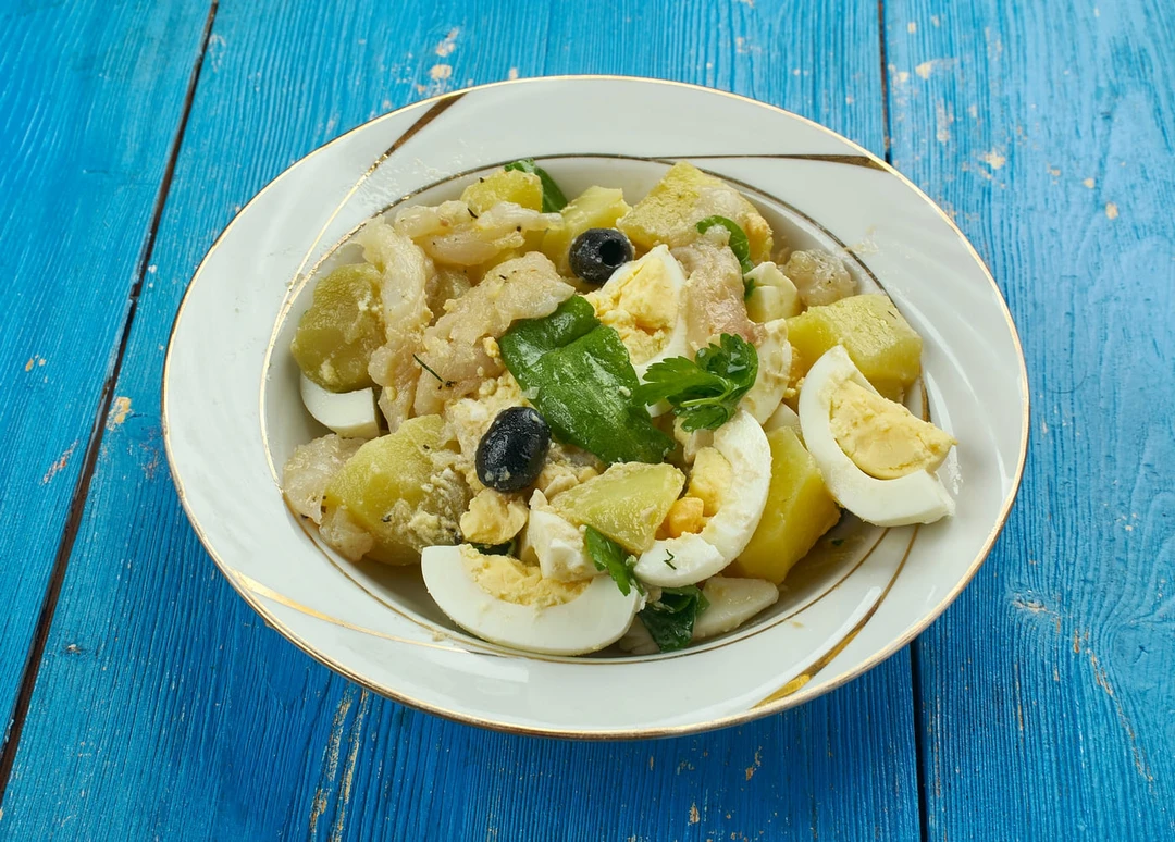 - Энсалада малагенья. Традиционный салат кухни Малаги из отварного картофеля, яиц, оливок и солёной трески. Самый неожиданный ингредиент здесь — апельсин