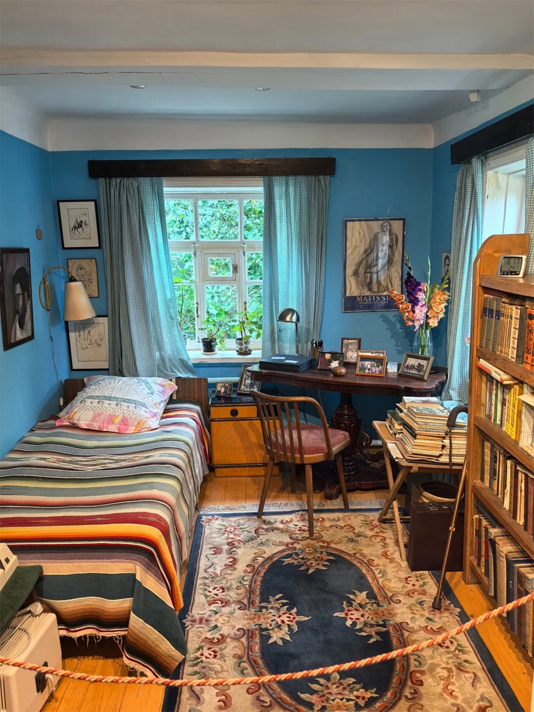 На знакомство с экспозицией уйдёт не меньше часа. В доме несколько тематических залов. Есть, например, воссозданный кабинет дедушки Марины Ивановны и комната, посвящённая окружению семьи Цветаевых в Тарусе. В каждом зале — предметы, рассказывающие историю отдельно взятой семьи и большой эпохи: письма, фотографии, рисунки, мебель и те самые книги в красном переплёте из одноимённого стихотворения поэтессы.