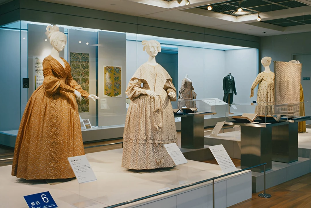 Экспозиция с головой погружает в историю моды — не только японской, но и мировой. В коллекции — пёстрые средневековые кимоно, пышные платья с кринолинами конца XVIII века, поражающие элегантностью наряды прекрасной эпохи, а также национальные костюмы жителей разных уголков планеты. Ежегодно в музее проводят увлекательные выставки, объединённые общим девизом: «Понимание культур мира и Японии через одежду». В 2024‑м, например, одна из них рассказывала, как одежда позволяет человеку адаптироваться к природным условиям, а вторая — об истории бус.