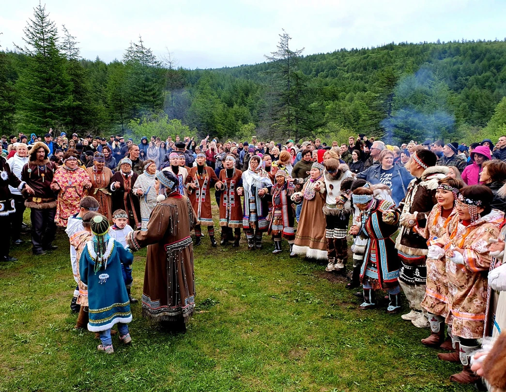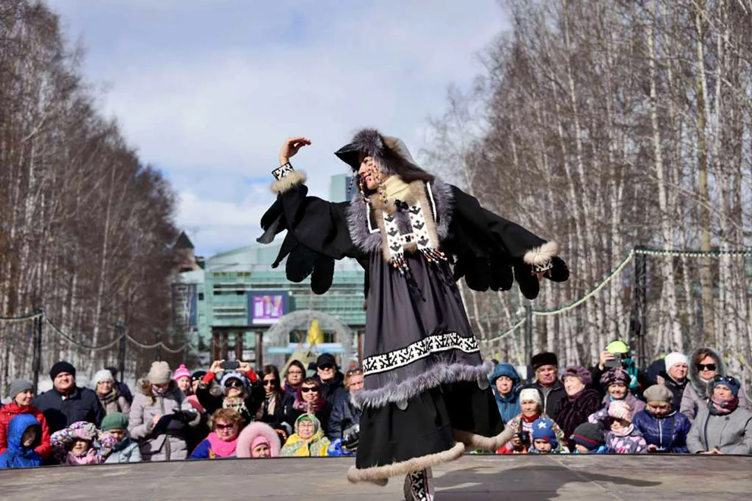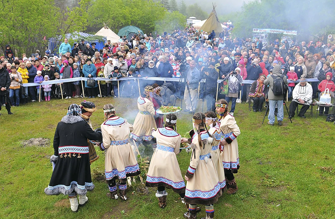 Гости смотрят театральные постановки по хантыйским сказкам и гонки на оленьих нартах, играют на национальных музыкальных инструментах, фотографируются в традиционной одежде обских угров и угощаются блюдами национальной кухни: наваристой ухой и пирогами с брусникой.