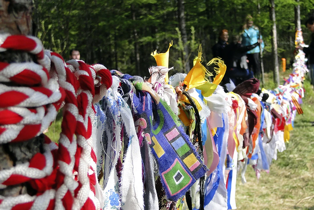 Чтобы завершить обряд очищения, нужно пройти через символические небесные врата: под протянутой между двумя деревьями верёвкой дэлбургэ. В завершение на неё повязывают цветную ленту и загадывают желание — по местным поверьям, если всё сделать правильно, в новом году мечта обязательно сбудется.