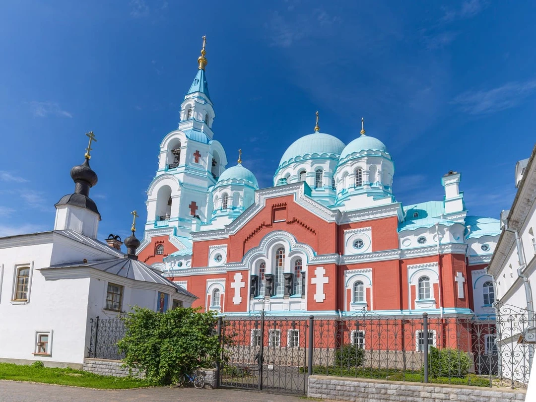 Обитель была основана в 1393 году в западной части Ладоги, на острове Коневец. К сожалению, древних строений в монастыре не осталось: к XVII веку он был почти уничтожен в период русско‑шведских войн. Большинство монастырских зданий, среди которых и двухъярусный храм Рождества Богородицы, были построены уже в начале XIX века. Несмотря на это, церковь, увенчанная пятью синими куполами, считается одной из древнейших каменных построек на Русском Севере (храм, который мы видим сейчас, был возведён на руинах более древнего).
