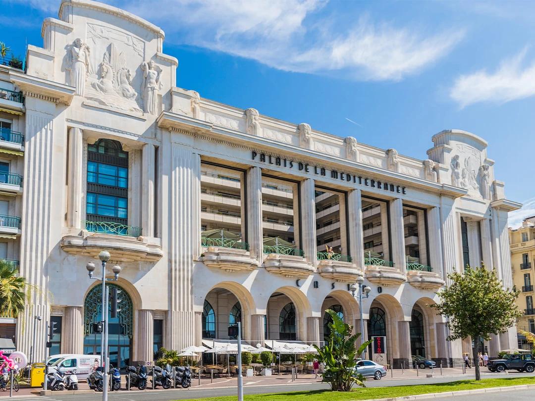 - Hyatt Regency Palais de la Méditerranée (13, Promenade des Anglais) — похожий на белоснежный лайнер и украшенный барельефами отель, шедевр ар‑деко. Когда‑то в концертном зале этой постройки 1929 года выступали Пиаф и Эллингтон.