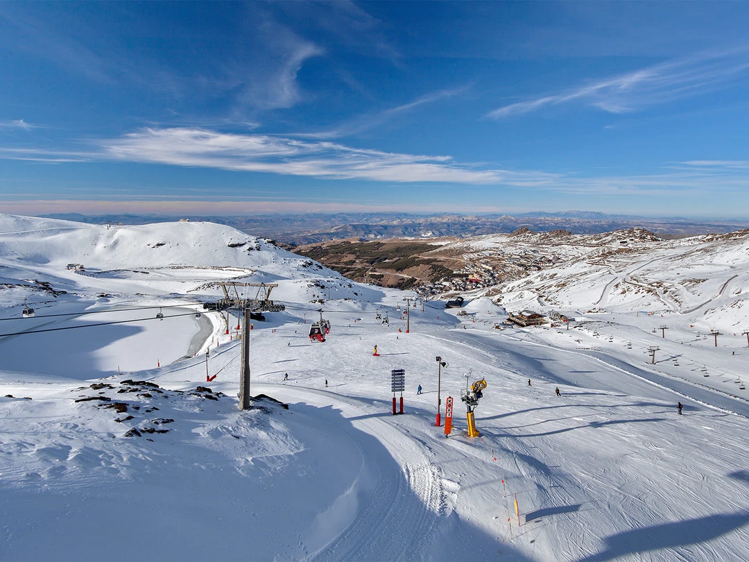 Сьерра‑Невада расположена в 40 километрах от Гранады и считается самым южным курортом. Здесь обустроено более 100 трасс разного уровня сложности: от лёгких зелёных для детей и новичков до чёрных, доступных только опытным спортсменам. Помимо катания на лыжах и сноубордах, здесь можно взять уроки по фристайлу (скоростному спуску с акробатическими трюками) или отправиться на трассу для беговых лыж.