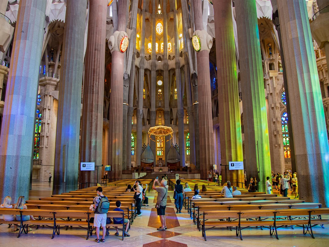 В столице Каталонии можно увидеть и самый известный проект зодчего — храм Святого Семейства, строительство которого Гауди считал делом всей жизни. Грандиозное строение начали возводить в 1882 году и планируют завершить к 2026‑му. По задумке автора, храм имеет три фасада, щедро украшенных объёмными резными изображениями. Они символизируют рождение, смерть и воскресение Христа. Венчают постройку 18 башен, шесть из которых ещё достраивают. И хотя строительные работы продолжаются, сегодня Саграда Фамилия — действующий храм, где проводятся богослужения.