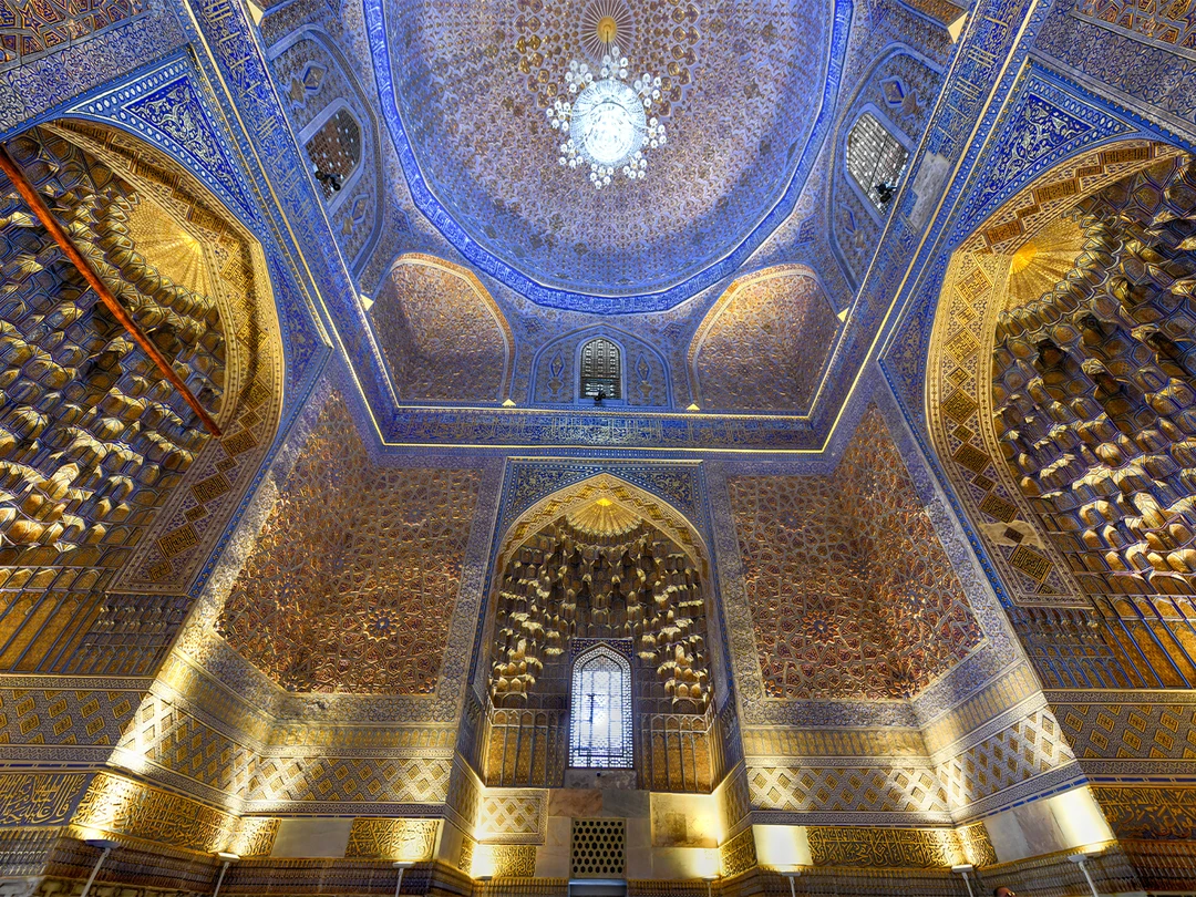 В Самарканде стоит побывать и в мавзолее Гур‑Эмир — это место захоронения полководца Тамерлана и его потомков. Здание поражает большим лазурным куполом — на нём 64 грани, по количеству лет жизни пророка Мухаммеда. В основном зале мавзолея вы увидите надгробия семьи прославленного завоевателя, при этом сами захоронения находятся внизу, в склепе, доступ к которому закрыт. Существует даже легенда: если потревожить могилы, миру грозит «проклятие Тамерлана». В народе до сих пор вспоминают события июня 1941 года, когда советские археологи вскрыли гробницу — и всего через несколько дней началась Великая Отечественная война.