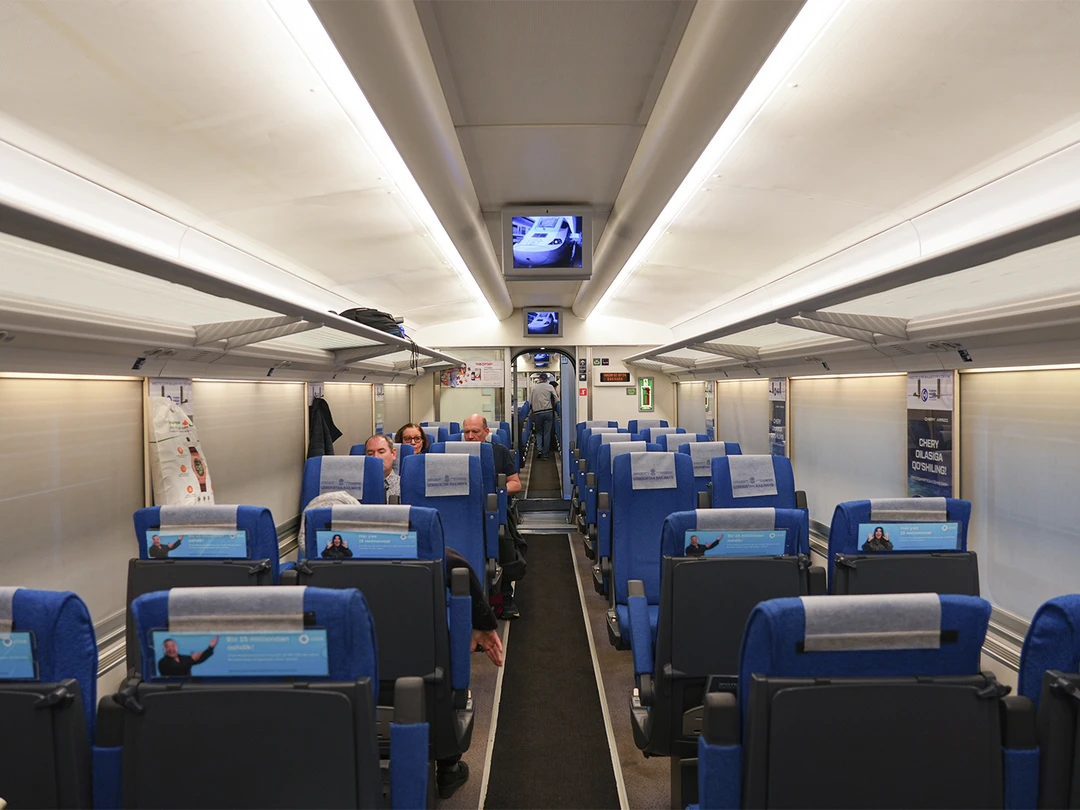 Между крупными городами Узбекистана удобно путешествовать на скоростном поезде «Афросиаб». Он преодолевает 280 километров между Ташкентом и Самаркандом за 2,5 часа, а 270 километров между Самаркандом и Бухарой — менее чем за 2 часа. От Бухары до Хивы тоже ходит поезд, но не скорый: ехать почти 6 часов.