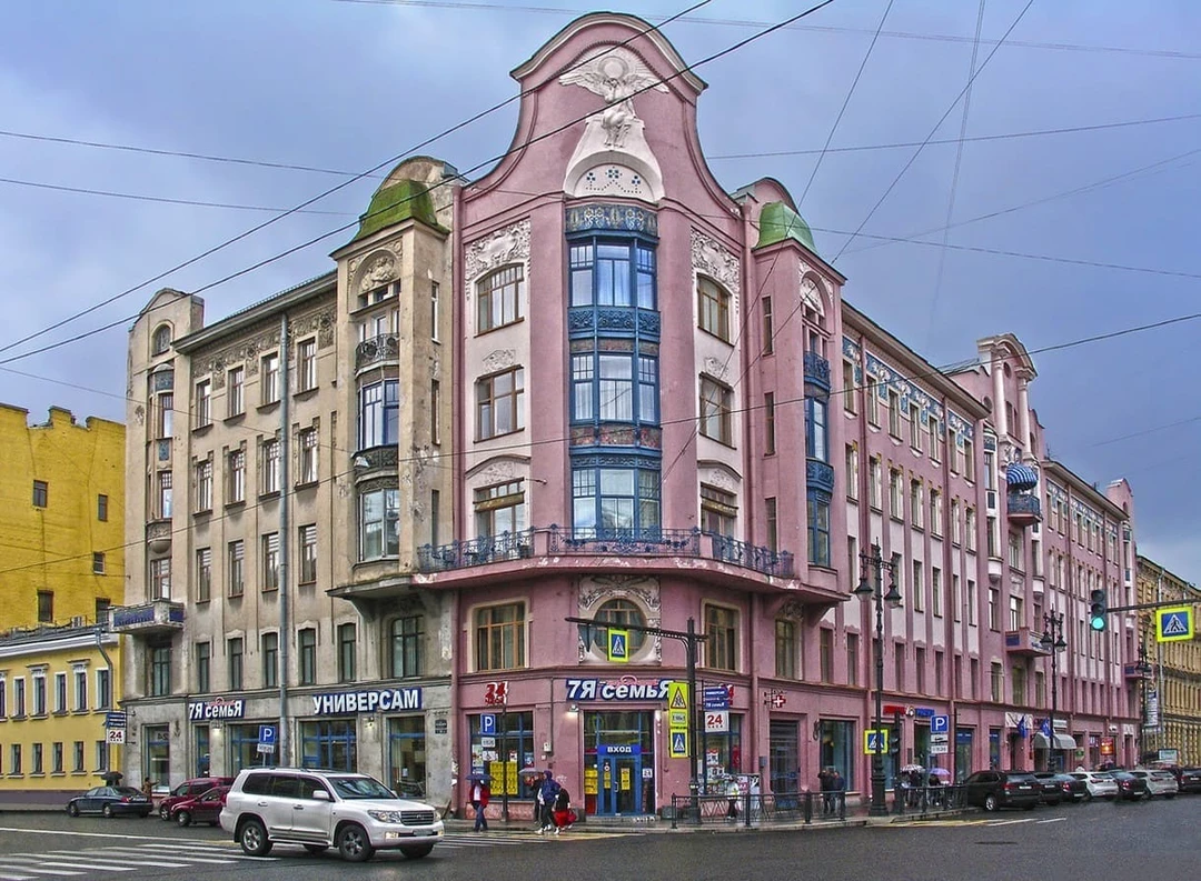 Огромное здание по этому адресу — архитектурная фантазия на тему новгородских теремов, крепостей и монастырей. Благодаря угловой башне с куполом, напоминающим шлем, его также сравнивают с могучим богатырём. Все эти отсылки к национальным мотивам не случайны: доходный дом гласного Городской думы П. М. Станового — яркий пример модерна с элементами неорусского стиля в Санкт‑Петербурге.