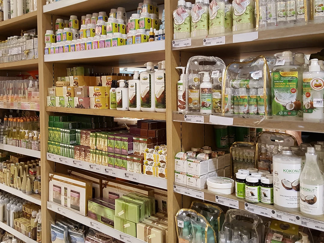 Популярностью пользуется тайская косметика на основе натуральных ингредиентов. В местных магазинах и аптеках легко отыскать кокосовое масло холодного отжима — универсальное средство для ухода за кожей и волосами. Не менее востребованы массажные масла с тонкими ароматами жасмина, лемонграсса или кокоса. Поклонники натуральной косметики оценят кремы и мыло с экстрактами мангостина, алоэ или папайи, а также зубные пасты с природными отбеливающими компонентами и скрабы на основе морской соли с тропическими фруктами.