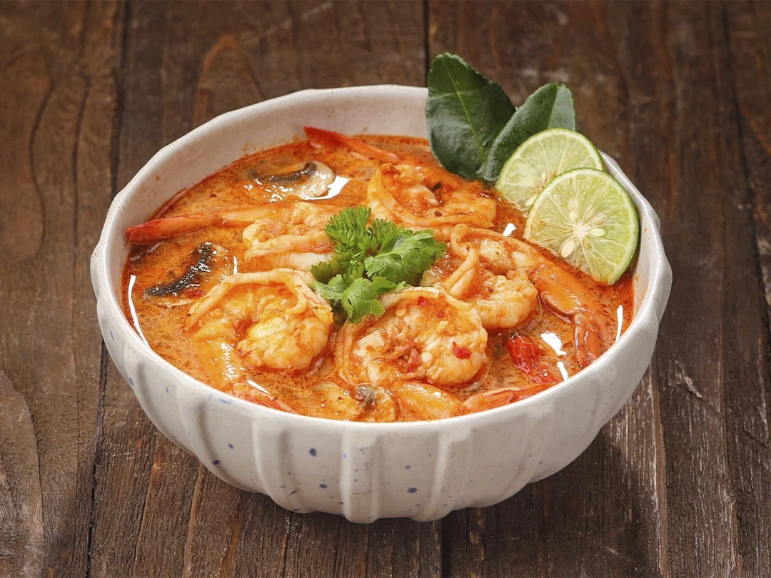 - Том‑ям — символ тайской кухни. Креветки, грибы, помидоры и лемонграсс варят в ароматном бульоне на основе чили, лаймового сока и рыбного соуса. Получается взрывной баланс кислого, острого, солёного и пряного. В Паттайе том‑ям подают почти в каждом заведении, но особенно хорош он в рыбных ресторанах у набережной.