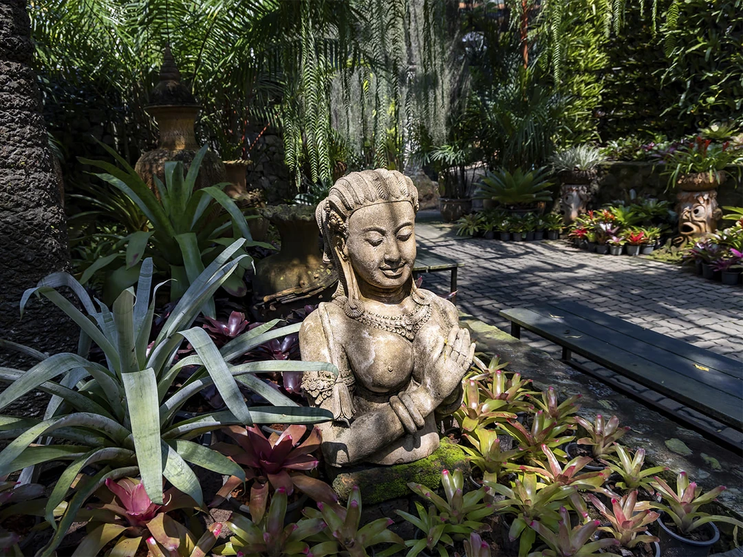 Рядом с Мондопом разбит умиротворяющий медитативный сад с прудом, где цветут лотосы. Вокруг водоёма расположились торговые палатки: можно купить корм для сомов, обитающих в пруду, или же приобрести клетку с птицей, черепахой или рыбками — их нужно выпустить на волю, чтобы очистить свою карму.
