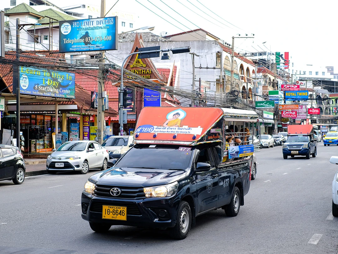 Классические такси в Паттайе не менее распространены. Они часто работают без счётчика, поэтому цену нужно обсуждать сразу. Гораздо удобнее и прозрачнее использовать мобильные приложения (Grab, Bolt), где видно фиксированную стоимость поездки и маршрут.