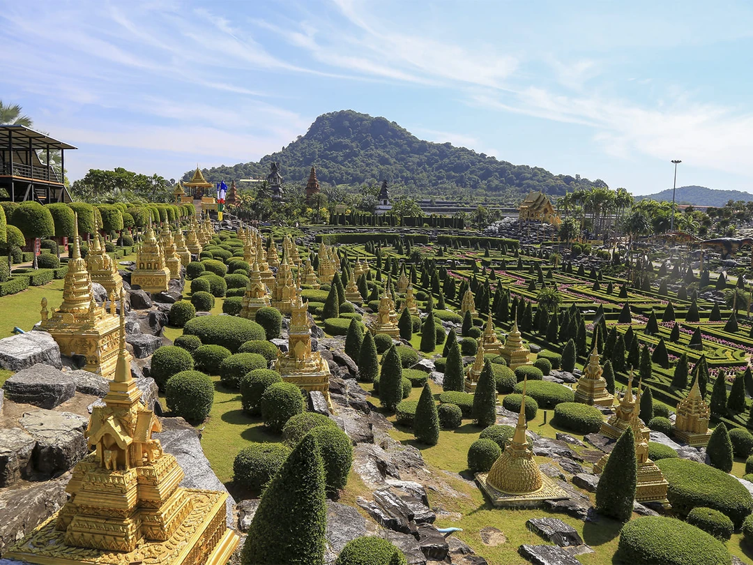 Огромный ботанический сад раскинулся примерно в 20 километрах от центра Паттайи. В 1954 году госпожа Нонгнуч Тансача и её муж приобрели участок земли, чтобы разбить на нём фруктовую плантацию. Но во время путешествий по миру хозяйку настолько впечатлили знаменитые сады Европы, что её планы изменились. Она захотела создать в Таиланде нечто столь же прекрасное и открытое для всех.