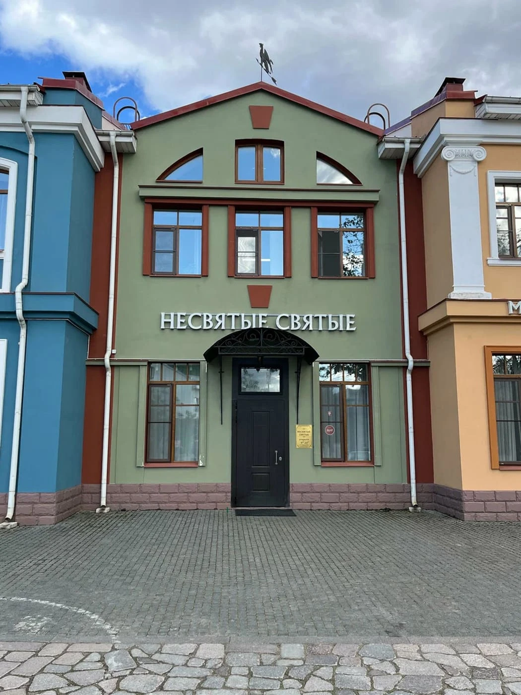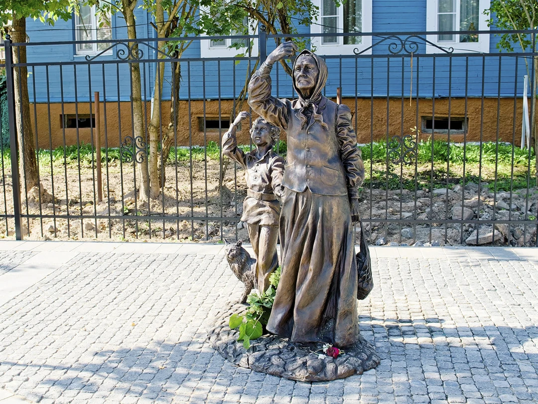 Здесь же начинается пешеходный участок Международной улицы, которая ведёт к Соборной площади и монастырю. Вереница цветных зданий сменяется церковными постройками XIX столетия: белоснежным храмом 40‑ка мучеников Севастийских со звонницей, небольшой часовней Александра Невского и деревянной Варваринской церковью. Напротив них стоит современная жанровая скульптура — памятник бабушке, которая крестится перед храмом. А позади неё ещё две фигуры — внук и кот.