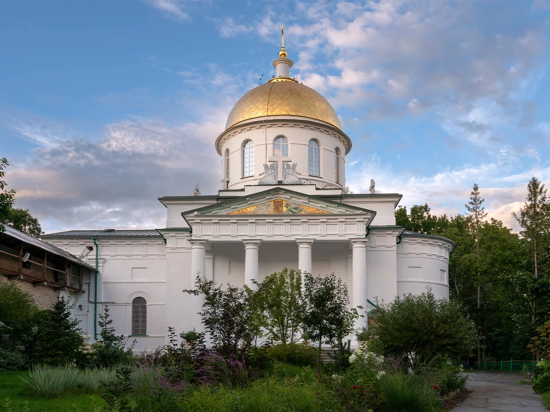 Самое крупное здание обители было построено в XIX веке в честь окончания войны с Наполеоном. Михайловский собор стоит на возвышении выделяется на фоне других монастырских построек своим архитектурным решением: белоснежное здание с портиками, колоннами и массивным золотым куполом наверху выполнено в стиле классицизм.