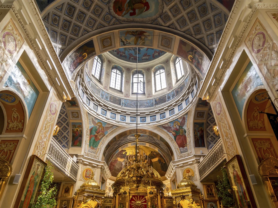 В XVIII столетии над пещерным храмом возведено потрясающее здание в стиле украинского барокко, украшенное фресками и пятью куполами. Это ещё один храм обители — Покровский. Нежно‑жёлтая постройка, привлекающая взгляд, состоит из трёх частей. Второй этаж занимает действующий Покровский храм, за фасадами первого скрывается главная церковь обители — Успенская, где хранятся мощи святых и ценные иконы (службы здесь тоже ведутся). Ниже располагается система пещер, которую монахи Псково‑Печерского монастыря в давние времена использовали в качестве склепа. Те помещения, что находятся ближе к поверхности, можно посетить и узнать истории людей, погребённых в них.