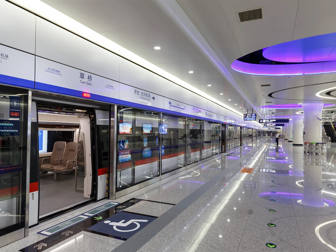 - Дасин. От терминала в город идёт линия Daxing Airport Express. Составы доезжают до станции Caoqiao, где можно перейти на ветки 10 и 19 столичного метро. Дорога занимает около 25 минут