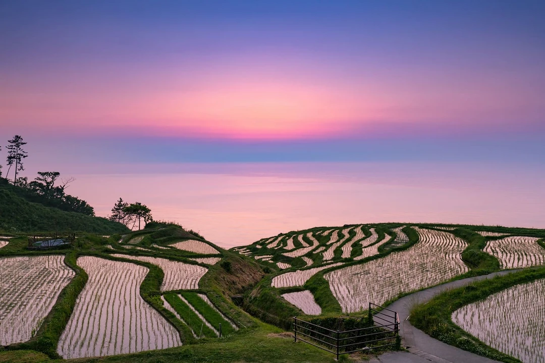 В этом живописном месте находится более тысячи рисовых полей площадью 18 м² каждое, которые спускаются каскадами к самому побережью Японского моря. Из‑за узких нестабильных участков и резкого рельефа их возделывают вручную по старинке, без использования современной техники. Этот традиционный способ земледелия считается значимой частью нематериального наследия Японии, и в 2011 году террасы были включены в реестр «Всемирно важного агрикультурного наследия».