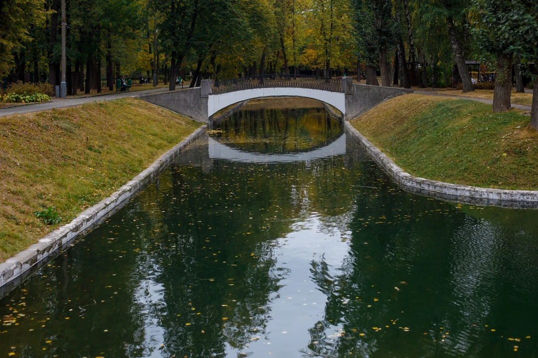 В парке установлены проложены прогулочные дорожки и несколько мостиков над каналами, втекающими в пруд, спортивная площадка. А ещё здесь есть специальная зона для собак и даже конный клуб.