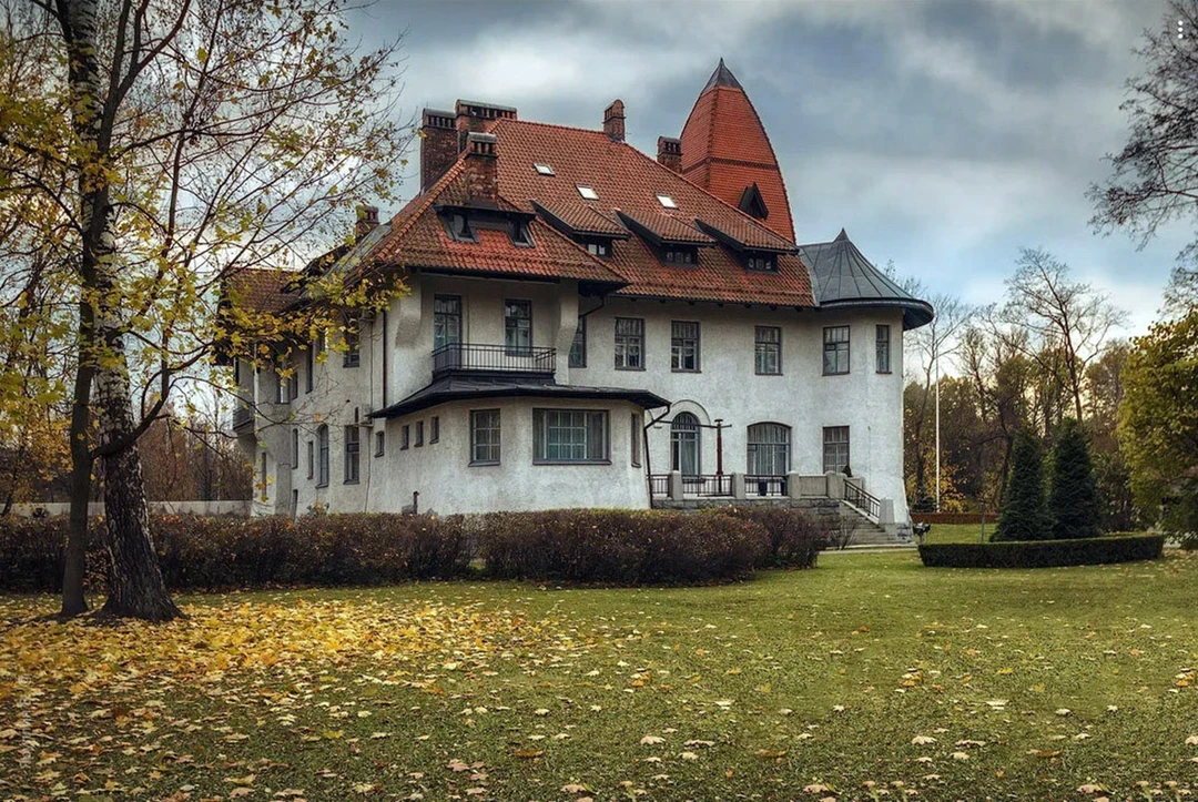 Одно из самых красивых и киногеничных зданий на Каменном острове. Деревянный особняк 1898 года постройки стал одним из первых зданий в стиле модерн в России.