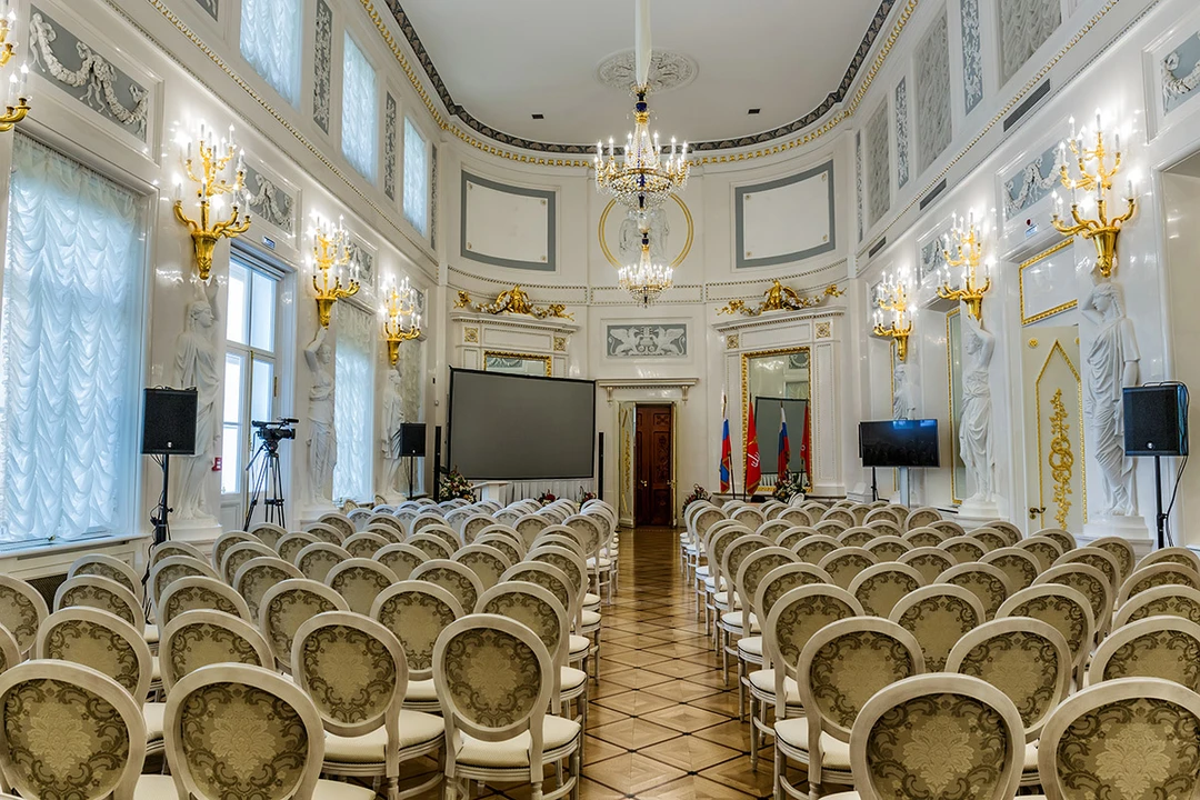 В числе самых красивых помещений дворца — Белый овальный зал. Его белоснежные стены украшают кариатиды и лепнина с позолотой, а на втором ярусе размещена галерея для оркестра, куда можно подняться, чтобы охватить взглядом всё пространство. А в одном из залов работает небольшая выставка исторических костюмов начала XX века — их детскому центру подарили создатели кинофильма «Матильда».