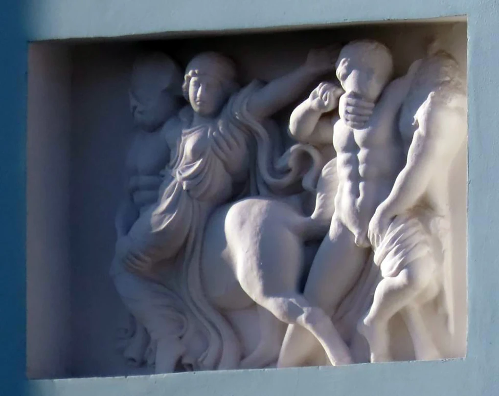 В центре вестибюля гостей встречает скульптура, изображающая сатира и нимфу. По легенде, с ней связана печальная история. Когда-то дочь прежнего хозяина особняка влюбилась в бедного юношу. Отец повелел бросить жениха, иначе он закажет скульптуру, изображающую девушку обнажённой, а её возлюбленного — в виде уродливого сатира. От горя девушка бросилась в колодец, на его месте впоследствии и установили статую.