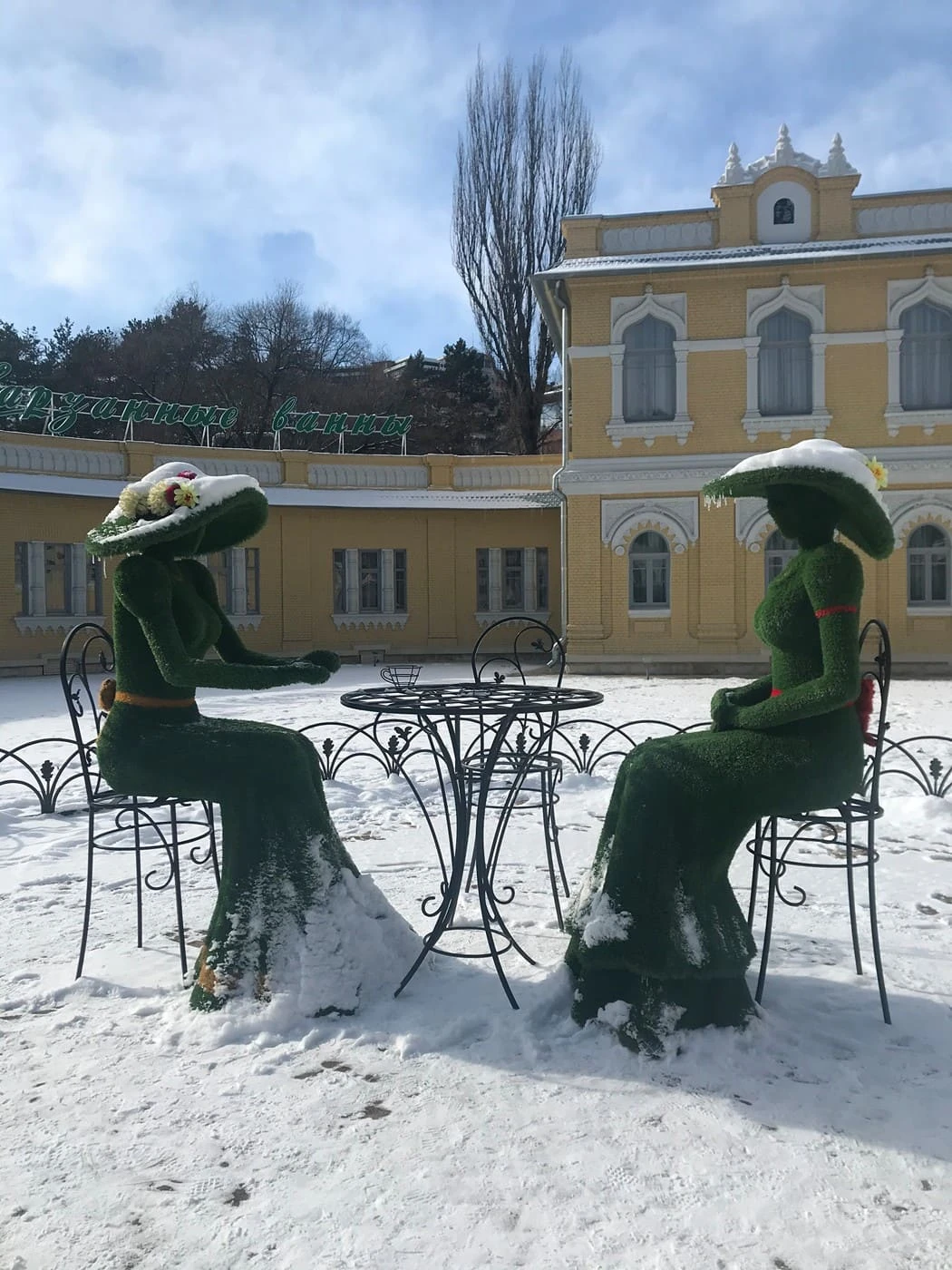Зимой в КМВ бывает холодно, а иногда выпадает снег. Если вам повезёт застать снегопад, Кисловодск превратится в городок с европейских открыток. И всё же чаще всего зима здесь похожа на осень. Но в сумрачную погоду старые санатории смотрятся ещё лучше!