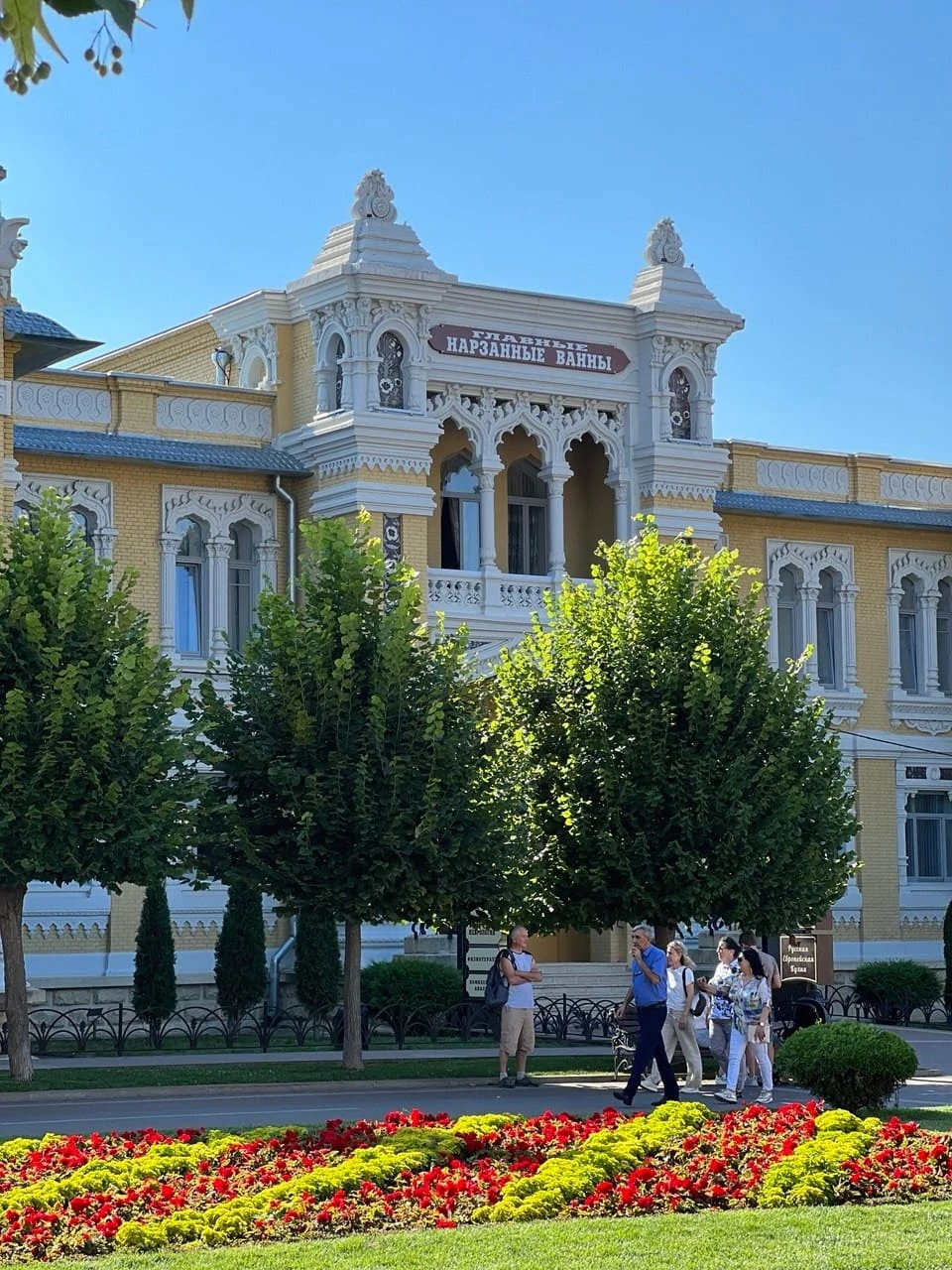Главная Нарзанная галерея. Здесь разливают те самые «Ессентуки‑17» и «Ессентуки‑4». Можно пробовать воду прямо из источников — свежайшую, как положено. Опыт классный, ощущаешь себя курортником позапрошлого века.