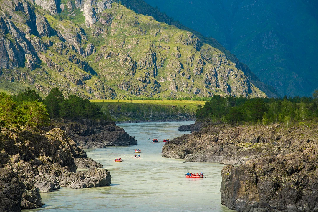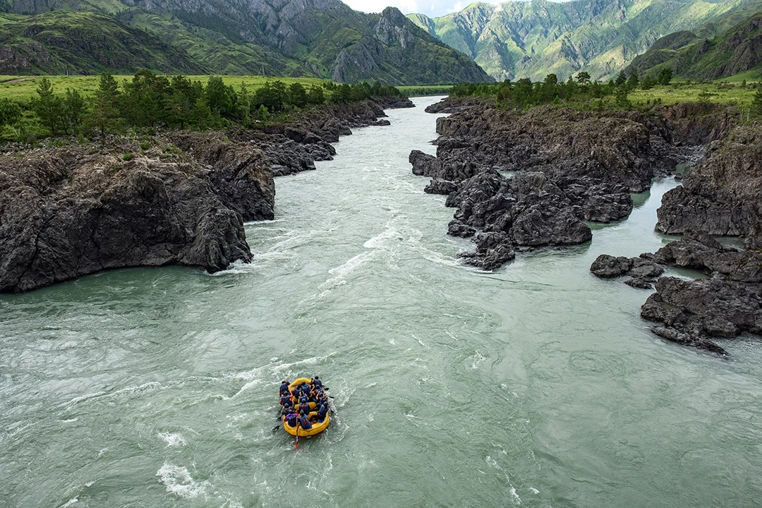 Катунь. Самая длинная река Алтая отличается разнообразием маршрутов. Здесь можно впервые взять весло в руки или проверить свои умения на порогах третьей и четвёртой категорий сложности, которые встречаются на среднем течении. Сплавы по Катуни длятся от нескольких часов до недели.