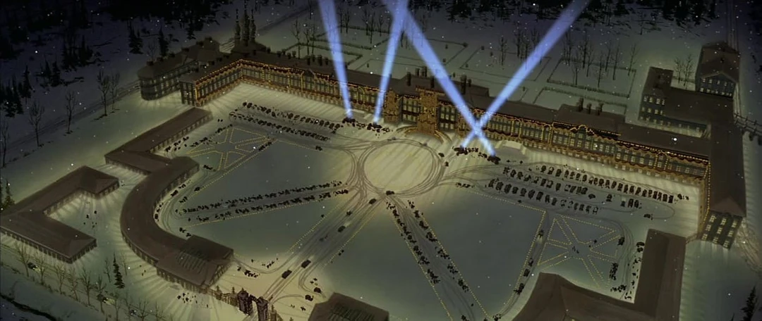 История о чудесном спасении княжны Анастасии начинается с торжественного бала в честь 300‑летия рода Романовых. С первых кадров заметно, что рисовали здание с Екатерининского дворца в Пушкине (сейчас это музей‑заповедник «Царское Село» в пригороде Санкт‑Петербурга).