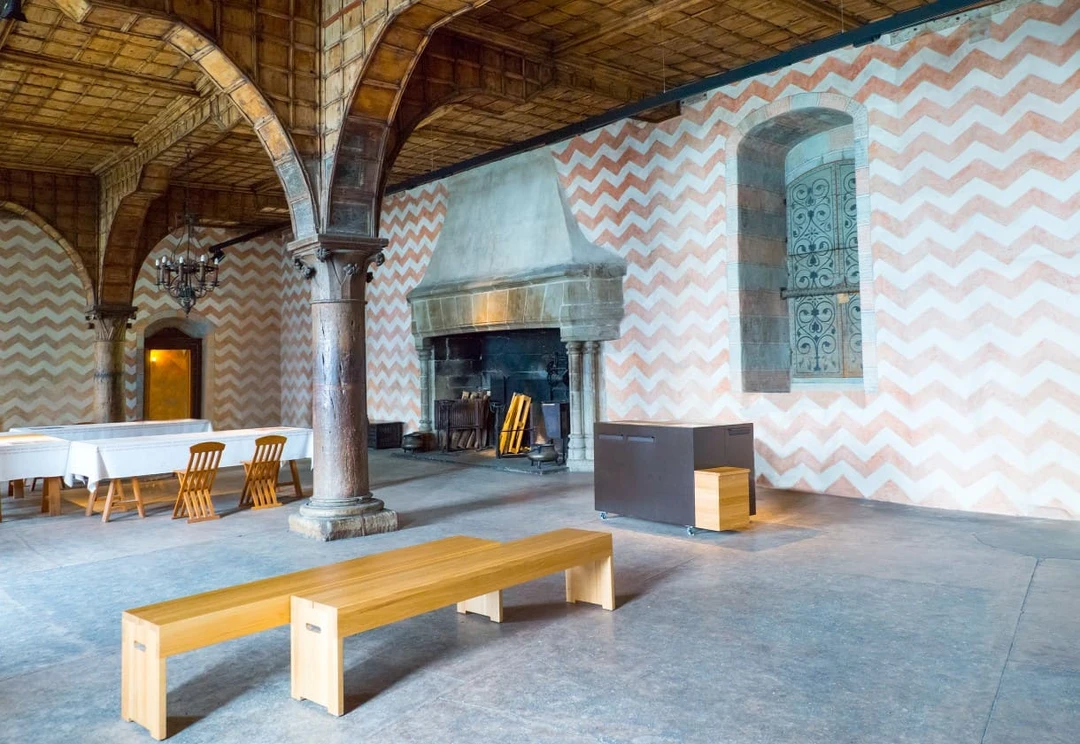 Сейчас в Нойшванштайн можно попасть с экскурсией. Здесь прекрасно сохранились богато декорированные залы — Певческий, Тронный и другие. Особого внимания заслуживает спальня короля: это единственное во всём замке помещение в стиле неоготики. Настенные панели, потолок и массивная кровать с балдахином украшены изящной резьбой по дереву, над которой в течение полутора лет трудились более 60 мастеров. А в верхней части стен можно увидеть ковры с изображениями сцен из средневекового романа о Тристане и Изольде.
