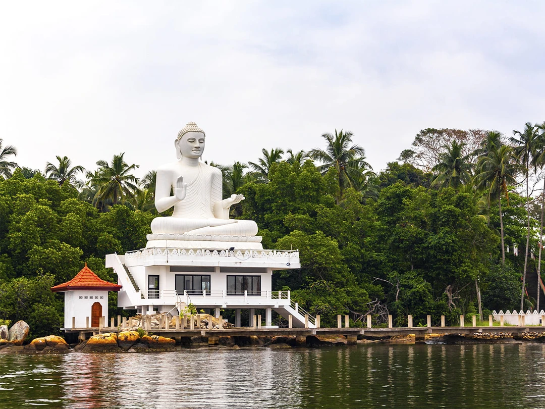 Что касается культурных достопримечательностей Бентоты, то одну из самых известных можно увидеть практически на пляже. В месте, где река встречается с океаном, расположен древний храмовый комплекс, построенный предположительно в XII веке. Сейчас там можно заглянуть постройки в традиционном сингальском стиле, помедитировать на специальной площадке и рассмотреть старинные надписи, высеченные в скале. Интересно, что главный храм оформлен в сдержанных монохромных цветах — в основном, в буддийских храмах много ярких красок.