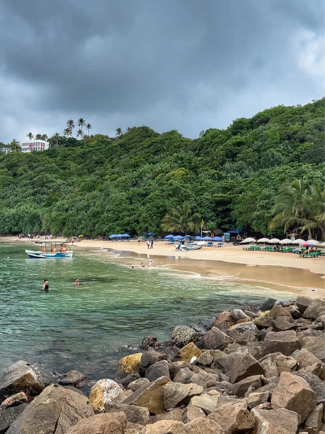 - Кабалана — пляж с европейской атмосферой и живописными пейзажами, но купаться там опасно из‑за обратного течения