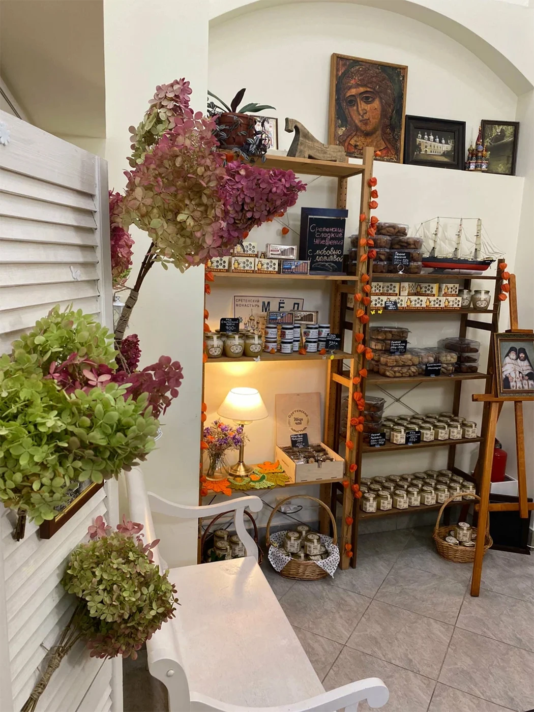 Если захочется полноценно поесть, заходите во двор монастыря. Тут, в подклете трапезного храма во имя Сергия Радонежского, построенного по примеру такого же в Троице‑Сергиевом монастыре, расположена традиционная церковная трапезная. Кроме сытного обеда, получите массу впечатлений: потолок и стены здесь расписаны удивительными фресками с изображением святых. В меню — домашняя еда: на выбор предлагают борщ, рассольник, щи, пельмени, вареники, пирожки и другие блюда русской кухни.