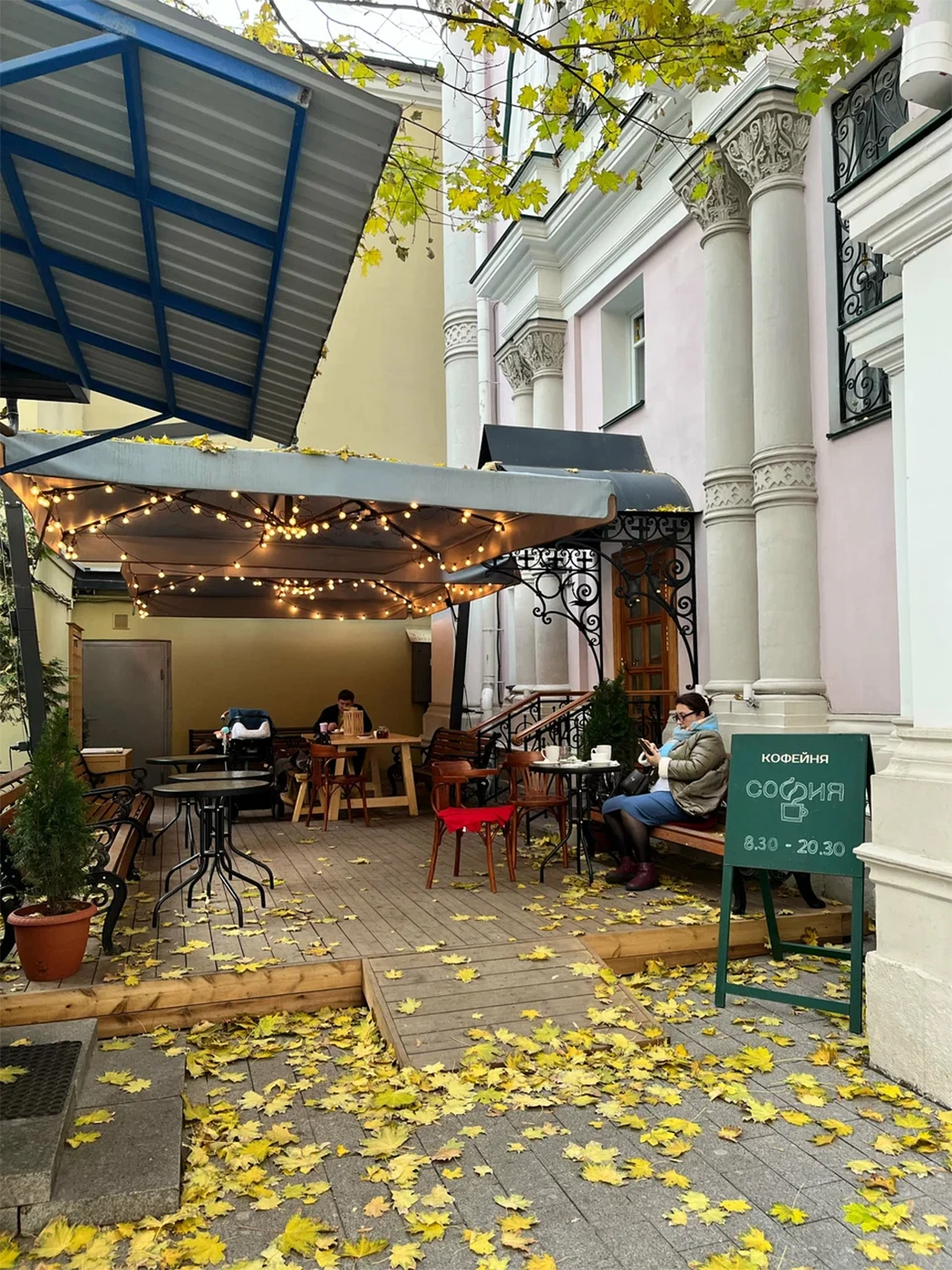 Эта кофейня расположилась возле храма‑новостроя, который возвели в 2000‑е в честь погибших верующих православной церкви в XX веке. Здание получилось необычным и эффектным: с высоким шатром с рядом килевидных кокошников и золотым куполом. Проектируя его, архитекторы опирались на лучшие образцы церковного зодчества эпохи Ивана Грозного.