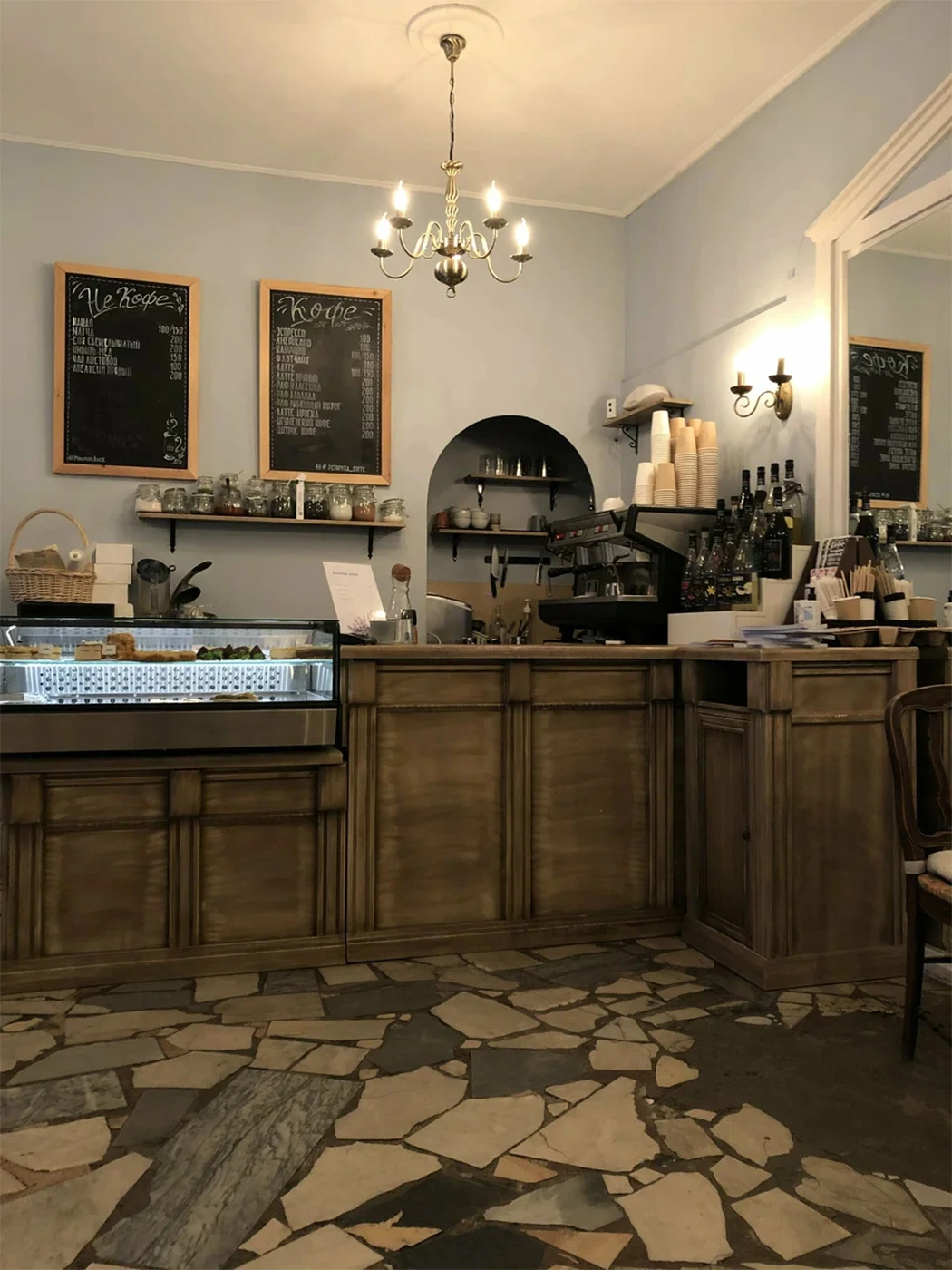 Кофейня при храме оформлена необычно. Создатели места «проиллюстрировали» воскресение Христа прямо в пространстве залов. Первый находится в подвальном помещении, напоминающем катакомбы, где собирались первые христиане. Другой зал отсылает к погребальной пещере, где был упокоен Иисус после распятия. А третий — застеклённая веранда — символизирует пространство воскресения. Здесь, вспоминая библейскую историю, можно выпить горячий кофе с чёрной смородиной или классический фильтр‑кофе с булочкой или круассаном.