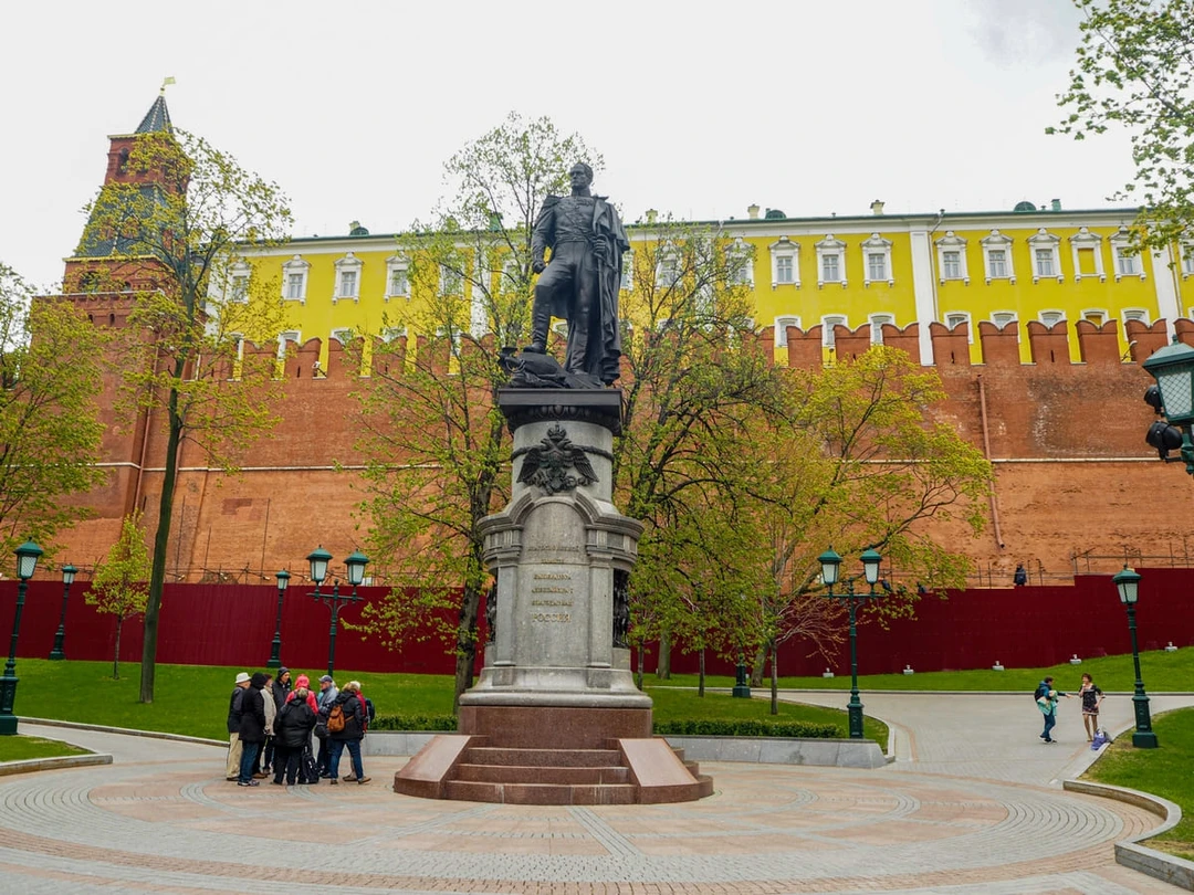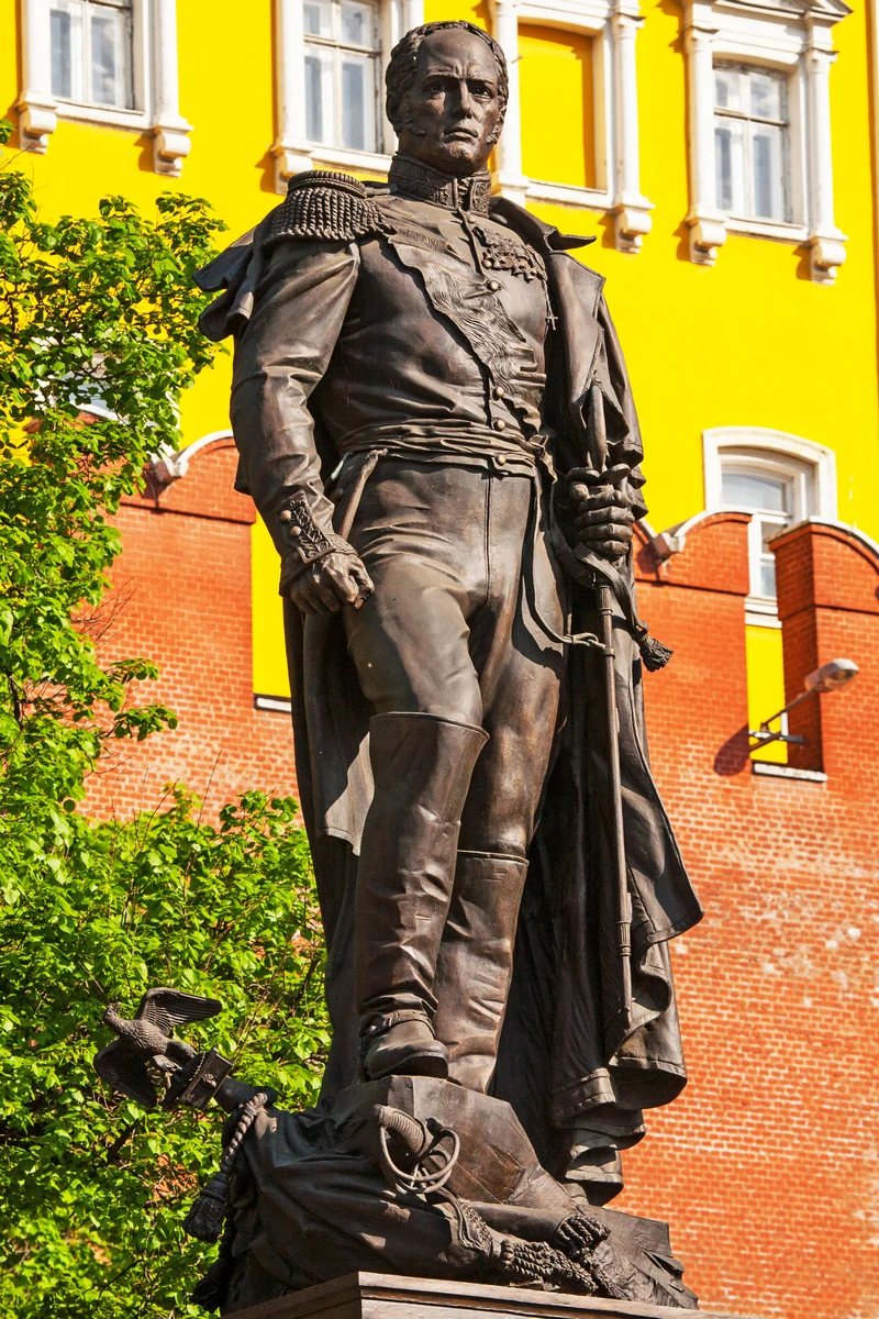 Один из самых молодых памятников в нашей подборке. Монумент у стен Московского Кремля открыли в 2014‑м — в год 200‑летия победы над наполеоновскими войсками. Расположен памятник в Александровском саду, рядом с Боровицкими воротами Кремля. Кстати, сад получил название как раз в честь Александра I и стал символом возрождения города после пожара 1812 года.