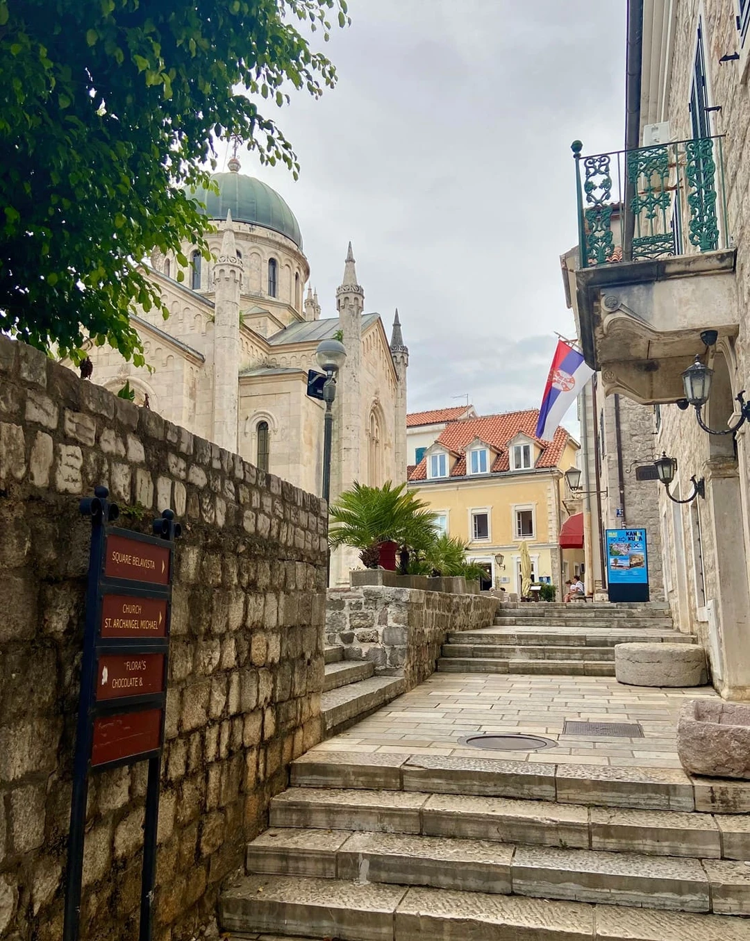 Херцег‑Нови называют «городом тысячи ступенек» — будьте готовы к тому, что по пути практически до любой локации вам нужно будет преодолеть подъём по лестнице. Сначала кажется, что к этому невозможно привыкнуть, особенно в жаркую погоду. Оказалось — возможно. И всё же, как только я начала лучше ориентироваться в городе, стала выбирать подъёмы в горку без ступенек: так куда проще.