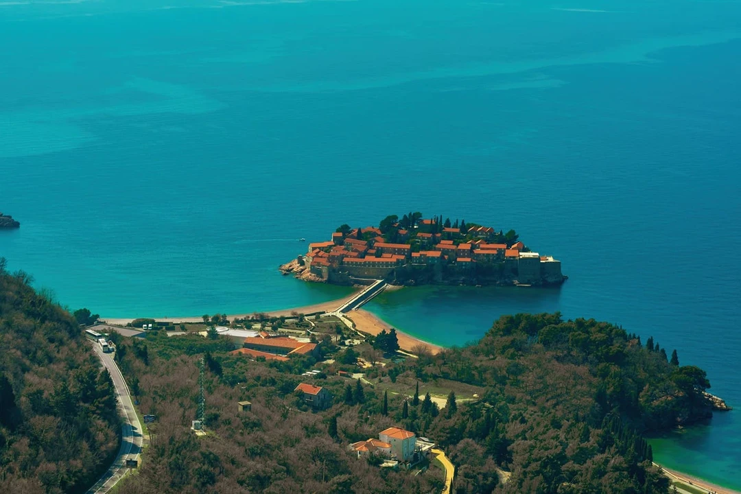 Свети‑Стефан соединён с берегом узким перешейком. Правда, вход на остров открыт только для постояльцев. Но не расстраивайтесь: со смотровых площадок на него открывается идеальный вид. Рядом с островом есть два пляжа: один платный, с лежаками от отеля; другой бесплатный, с галькой и тем самым открыточным видом прямо перед глазами. А если подняться чуть выше — например, к монастырю Прасквица, — можно полюбоваться ещё более красивыми панорамами, а люди вокруг почти не встречаются.