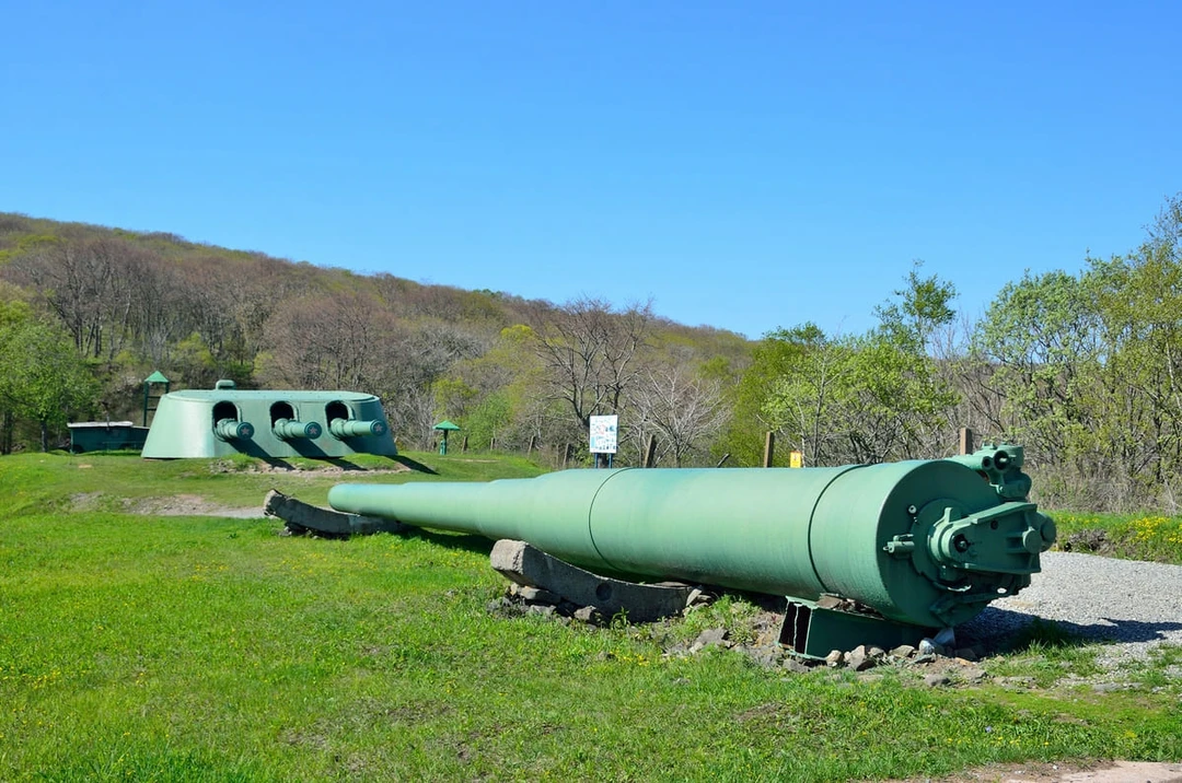 Её называют чудом советской военной техники. В начале 1930‑х советское правительство решило усилить оборону Владивостока и построить на Русском артиллерийскую 305‑миллиметровую башенную батарею. «Верхушками» этого трёхуровневого бункера стали две башни, вооружённые артиллерией с корабля «Михаил Фрунзе». Под башнями были жилые и технические помещения, а также склады с боеприпасами. Снаряды доставляли наверх с помощью монорельса.