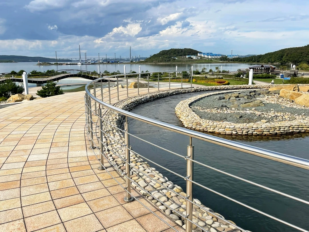 Мост автомобильный, поэтому прогуляться здесь не получится. Но по нему можно проехать — на своей машине, такси или городском автобусе. А для эффектных фотосессий на фоне моста лучше всего отправиться на пляж в посёлке Поспелово в северной части острова.