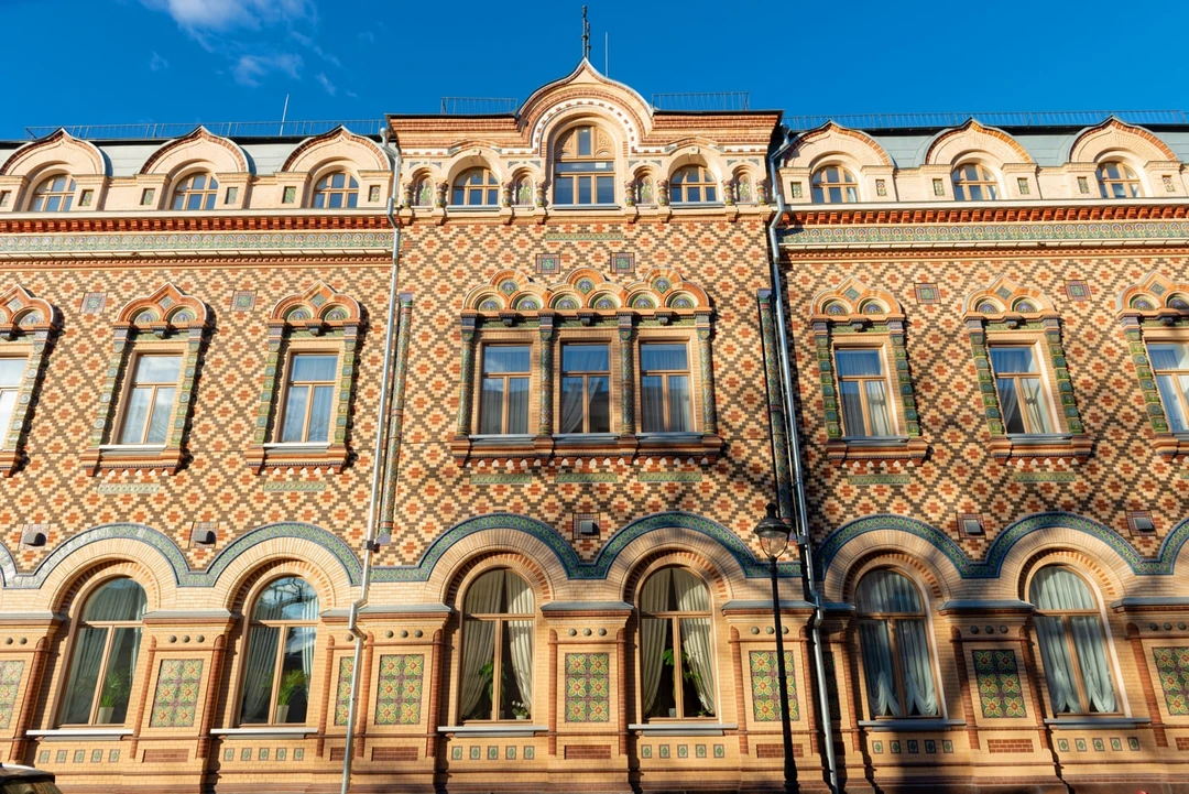 Одна из самых известных столичных построек в неорусском стиле — с шатрами и арками — бывший особняк купца Николая Игумнова. Здание строили с 1888‑го по 1895‑й, а хозяину оно обошлось в немалую сумму. Но Игумнов жил на широкую ногу, поэтому не скупился на материал: кирпич для работ везли из Голландии, а мрамор — из Тосканы. Интересно, что часть интерьеров дома была оформлена в древнерусском стиле, а часть — в духе Версальского дворца. Впрочем, у рядовых москвичей эта парадная постройка не вызвала особого восторга.